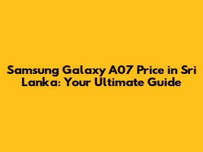 Samsung Galaxy A07 Price In Sri Lanka: Your Ultimate Guide